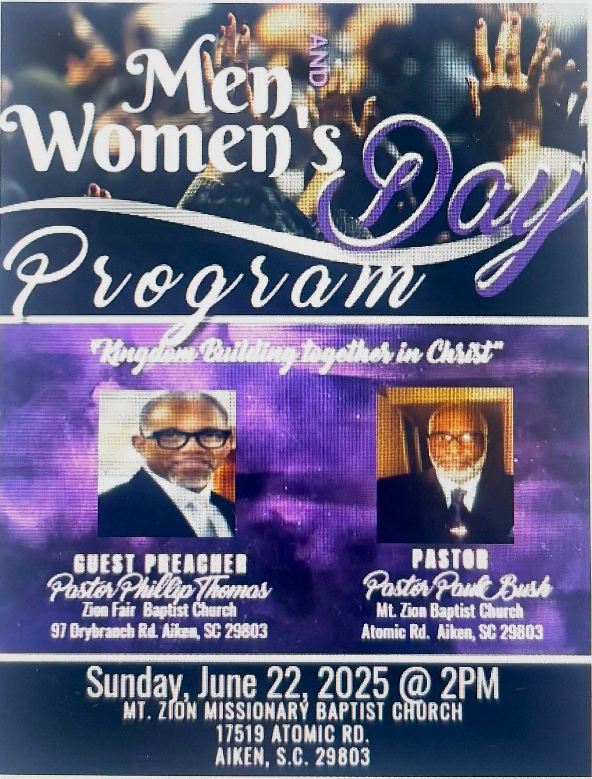 Mt. Zion Men and Women's Day June 22 - 2:00 PM Rev. Phillip Thomas and Zion Fair MBC guests